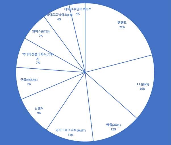 4위는 마이크로소프트(MSFT,2831)다. XBOX본체와 모바일 전용 게임을 만드는XBOX게임스튜디오를 보유하고 있다. ‘헤일로’, ‘포르자’ 시리즈로 유명하다.