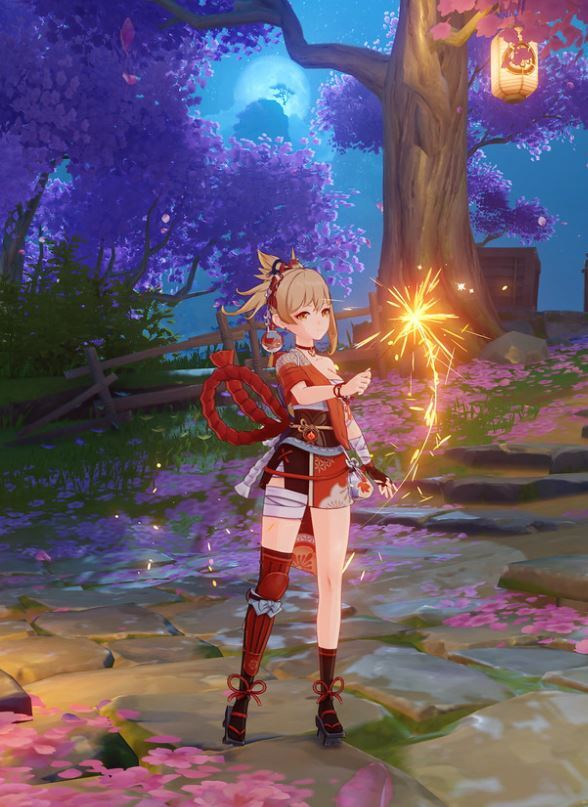 5성 궁수 ‘요이미야’는 일정 시간 일반 공격을 염초 화살로 변화시켜 불 원소 피해를 주는 스킬, 불 원소 범위 피해와 추가 폭발 피해를 가하는 원소폭발 스킬을 지녔다.