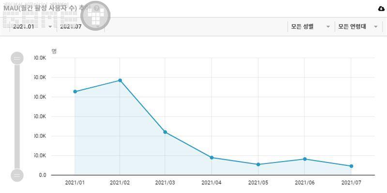 그랑사가의 MAU(월간 활성사용자수)는 지난 1월 출시 이후 2월 피크를 달성한 다음, 줄곧 하락세를 보이다가 4월 이후 하향 안정화 추세에 접어든 그래프를 보여주고 있다. 지난 7월과 2월의 MAU 차이는 약 10배에 달한다. 따라서 지난 2월 피크에는 약 100억 원 이상의 수익을 올린 것으로 분석된다.