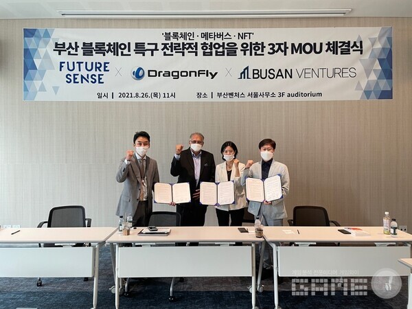 회사는 지난달 25일 퓨처센스 및 부산벤처스와 ‘부산시 블록체인 규제자유특구’의 블록체인, 메타버스, NFT 생태계 구축을 위하여 3자 MOU를 체결한데 이어 30일에는 민간 주도 협의체 ‘메타버스 얼라이언스’에 합류했다.