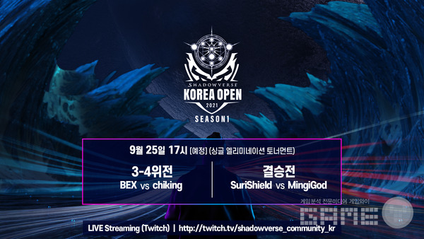 액토즈소프트의 e스포츠 자회사 브이에스게임은 25일 오후 5시부터 VSG TV를 통해 '섀도우버스 코리아 오픈 2021 시즌 1'의 결승전과 3-4위전을 진행한다.