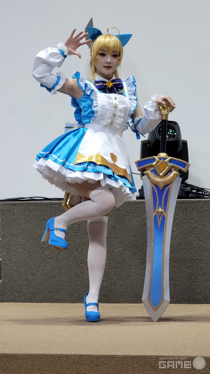 현장에서는 코스플레이도 진행되고 있었다. 금방이라도 게임 속에서 튀어나온 듯 한 4명의 코스플레이어가 관람객들을 향해 포즈를 취한다. 이들은 메인 스테이지와 우측 스테이지에서 매번 다른 포즈로 지나는 사람들의 카메라 셔터를 누르게 한다.