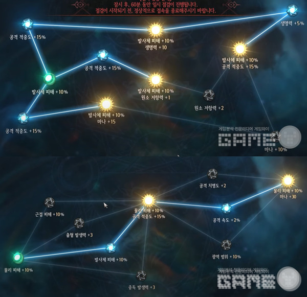 그래서 이번 테스트에서 가장 많은 플레이어들은 활을 예로 들면 확산사격과 연속사격을 통해 공격범위와 공격속도를 늘렸고 5개의 스킬 중 메인 스킬은 2개, 나머지 3개는 기술을 더 강력하게 만들기 위한 보조용 스킬을 사용하는 경우가 많다.
