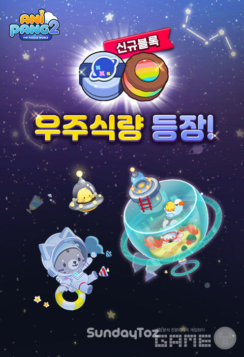 일정 개수를 획득하는 미션으로 출현하는 ‘우주식량’ 블록은 지난해 1월 '미사일 위성' 이후 13개월 만에 선보이는 새로운 특수 블록으로 기대를 모은다. '우주식량' 블록은 세 번의 인접 블록 타격으로 밀봉된 캔을 열어 획득할 수 있다. 또한 신규 블록 '우주식량'은 식량캔의 타격에서 다양한 애니메이션 모션과 별도로 제작한 사운드 등이 노출되는 별미를 준비했다.