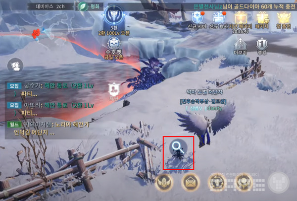 퀘스트를 받으면 까치풀 찾기로 바뀌고 퀘스트 목록을 터치하면 자동으로 이동한다. 그런데 해당 위치로 가면 돋보기가 생기기 않는다는 얘기가 많다. 안 생기면 다시 접속을 해보든가 해야 한다.