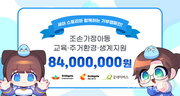 스마일게이트 엔터테인먼트는 17일 버추얼 크리에이터 ‘세아(SE:A)’가 지난해 1년 동안 진행했던 방송에서 시청자들로부터 받았던 후원금과 기부방송 캠페인 등을 통해 모은 성금 등 총 8,400만원 전액을 스마일게이트 희망스튜디오를 통해 글로벌 아동권리 전문 NGO 굿네이버스에 전달했다.