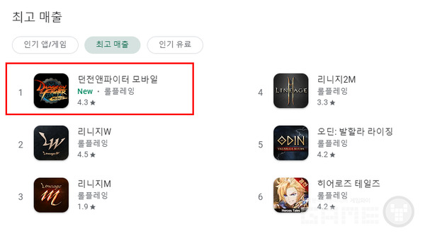 - '던파모바일의 힘' 출시와 함께 양대마켓 인기 1위