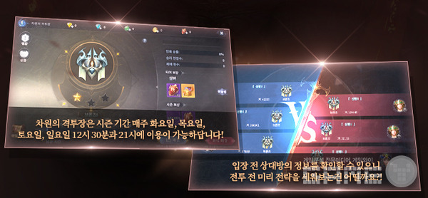 이번에 공개된 '차원의 격투장' 맵은 '칸투르 유적'과 '이카루스'다. 각 전장은 형태와 효과가 달라 다양한 전략적 판단이 요구된다.