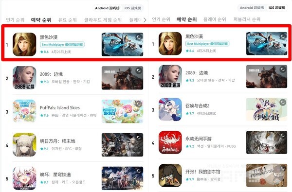 '검은사막 모바일'은 오픈 후 중국 애플 앱스토어 인기 순위 1위와 텐센트 앱마켓 탭탭 (TAP TAP) 인기 순위 1위에 올랐다.