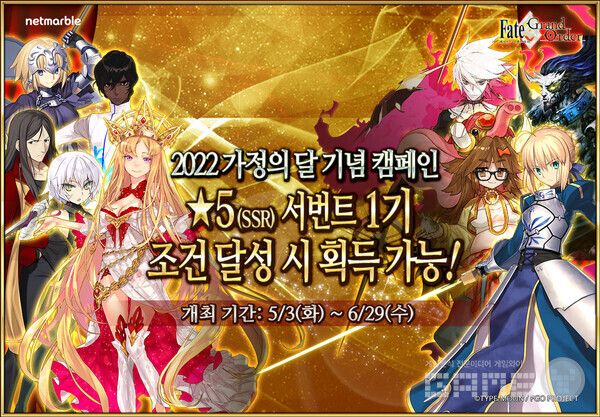 넷마블은 '페이트/그랜드 오더'에서 '2022 가정의 달 캠페인'을 맞아 특설 사이트를 오픈하고, '페이트/그랜드 오더' 국내 서비스 최초로 5성 서번트(캐릭터)를 모든 이용자에게 증정한다.
