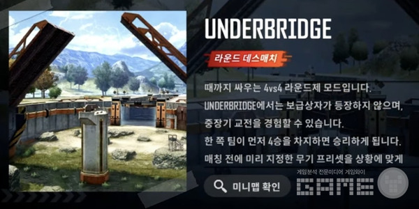우선, 4x4 라운드제 전장 콘텐츠로 이용자들의 사랑을 받고 있는 라운드 데스 매치에는 신규 맵 '언더브릿지'가 추가됐다.