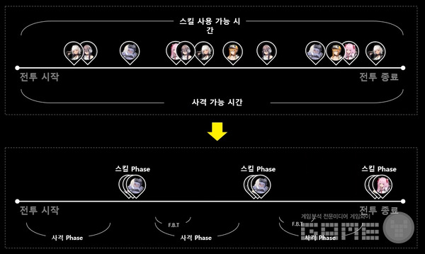 그랬더니 굉장히 하드코어한 게임으로 변해버렸다. 그래서 일관된 전투 템포에서 긴장의 이완과 수축 구간이 설계된 전투 템포로 변경했다. 사격과 스킬 페이지를 구분했고, 스킬은 쿨타임 베이스가 아니라 특정 조건에 의해 발동되도록 했더니 전투 템포가 매끄럽게 이어졌다.