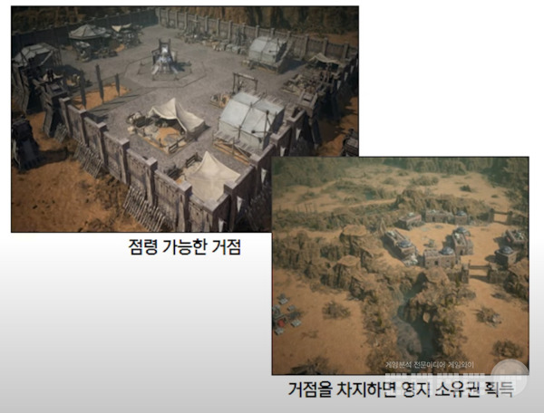 기본적으로 영지별로 등급에 차이가 존재한다. 최상위 영지는 성으로서 가치가 유지된다. 다만 최상위 영지만 차지하면 끝나는 구조는 아니다. 영지마다 개성 있는 파밍 지역과 사용처가 존재하고 서로의 영지가 상호보완적으로 되도록 설계했다. 예를 들어 A지역과 B지역에서 나는 재료를 조합해야 아이템을 만들 수 있는 방식이다.