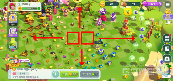 시간이 흘러 쿵야 및 아이템들이 넘쳐나면 정리가 어렵다. 건물과 아이템은 생산 아이템이 연동 되어야 한다. 꽃을 채취하면 정수가 생기다. 따라서 정수와 꽃은 붙어 있어야 한다.