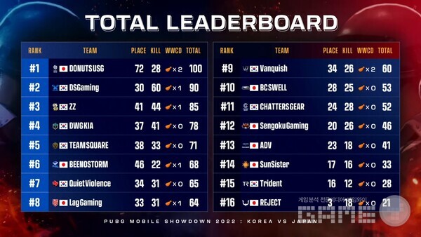 크래프톤의 ‘배틀그라운드 모바일 쇼다운 2022: 한국 VS 일본(PUBG MOBILE SHOWDOWN 2022: KOREA VS JAPAN, 이하 SHOWDOWN 2022 한일전)’이 일본의 DONUTS USG(도넛츠 유에스지)의 우승으로 막을 내렸다.