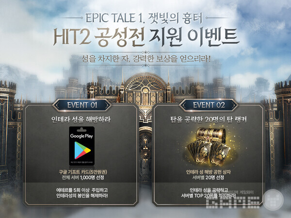 넥슨은 공성전 시작에 앞서 인테라성을 해방시키기 위해 필요한 ‘에테르 조각’ 획득을 지원하는 이벤트를 연다. 공성전은 서버의 주인을 결정하는 길드 간 대규모 PvP 콘텐츠로, 서버 내 이용자들이 다함께 ‘에테르 조각’을 모아 그란디르 필드에 위치한 4개의 공성탑에 주입해 인테라성 해방에 성공하면 해당 주차 일요일부터 공성전에 참여할 수 있게 된다.
