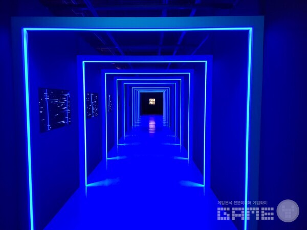 입장하게 되면 입구에서부터 파란색 조명을 통해 다른 곳으로 이어지는 느낌을 받는다. 내부 전시 공간은 G(Gate), A(Art), M(Media), E(Exhibition)의 4개의 전시공간으로 나뉘어져 있다. 들어서게 되면 '생각보다 작은데?'라는 느낌을 받지만, 나오는 그림들을 보다 보면 어느새 자신이 플레이했던 게임이 나올 때까지 기다리는 모습을 볼 수 있다. 속이 굉장히 알차게 구성되어 있다.