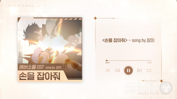 공식 유튜브 및 멜론에서도 ‘에버소울’의 OST를 만나볼 수 있다. 공개된 6종의 캐릭터 OST에서는 각 캐릭터를 연기한 성우들이 노래를 녹음한 것을 들을 수 있다. 특히 최근 출시한 ‘러브인 로그인’의 박다혜의 음성을 맡은 장미 성우가 ‘메피스토펠레스’의 OST인 ‘손을 잡아줘’를 부르며 이용자들의 좋은 평가를 받았다. 이처럼 나인아크는 이용자들이 ‘에버소울’에서 정령에게 몰입할 수 있게 게임 내에서도 풀보이스와 고퀄리티의 일러스트를 제공할 예정이다.