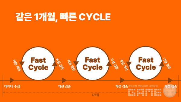 하지만 유입시킨 사용자가 특정 위치에서 지속적으로 이탈된다면 마케팅 비용을 들여 유입시킨 사용자들이 충분히 게임에 머무르며 매출을 내지 못하기 때문에 게임의 전반적인 영역에 걸쳐서 빠르게 개선하고 그 결과를 검증하는 것이 반드시 필요하다. 예를 들어 100명의 사용자가 유입되면 첫번째 스테이지에서 30명의 사용자가 이탈한다고 했을 때 이탈하는 이유를 발견하고 이를 해결하지 않으면 계속해서 30%의 사용자를 놓치게되는 셈이다. 따라서 사업 PM이 게임을 관리하며 데이터를 분석을 통해 문제가 되고 있는 지점을 발견하고 해결책을 배포해서 문제가 해결되는 지를 기존 사이클보다 훨씬 더 빠르게 확인해야만 게임 수익의 최적화를 달성해낼 수 있다.