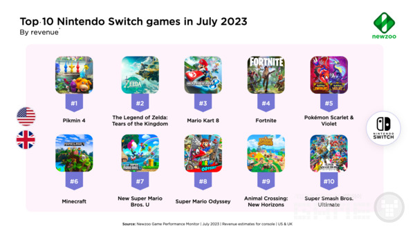 '피크민 4'는 2023년 7월 스위치에서 가장 많은 수익을 창출했다. '피크민4'는 마지막 피크민 모험 이후 10년의 기다림 끝에 7월 21일 출시되어 대부분의 호평과 인상적인 수익 수치를 기록했다. 7월 말에 출시되고 반복적인 수익원이 없음에도 불구하고 '젤다의 전설'이나 '마리오카트', '포트나이트'와 같은 강력한 게임을 제치고 최고 수익 자리를 차지했다.