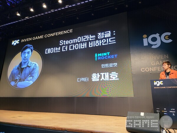 10일, 판교에 위치한 경기창조혁신센터에서 열린 IGC 2023에서 ‘데이브 더 다이버’의 개발을 맡은 황재호 PD가 ‘스팀이라는 정글: 데이브 더 다이버 비하인드’라는 주제로 강연을 진행했다.