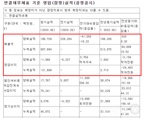 이번 3분기 출시된 신규 게임의 성과가 더해지며 별도 기준으로 전년 동기 대비 매출 10.9%, 영업이익 13.1% 증가하는 성장세를 보였고, 미디어 콘텐츠 계열사의 3분기 대작 라인업 부재 등에 따른 매출 및 이익 감소가 반영되어 연결 기준 매출은 0.3% 증가, 영업이익은 적자 전환됐다.