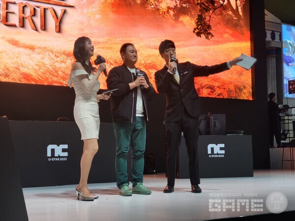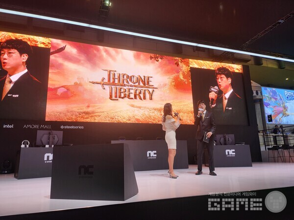 엔씨소프트가 18일 부산 벡스코에서 열리는 지스타 2023 제 1전시관의 자사의 무대에서 ‘쓰론 앤 리버티(이하 TL)’의 변경점을 소개하는 ‘플레이 쓰론 앤 리버티’ 프로그램을 진행했다.