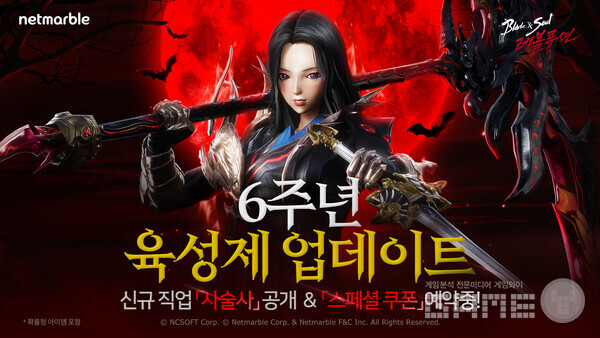 넷마블이 모바일 MMORPG '블레이드 & 소울 레볼루션'의 6주년 업데이트를 기념해, 특별 페이지를 오픈하고 ‘스페셜 쿠폰’을 사전 예약하는 이벤트를 진행하고 신규 직업 '사술사'를 공개한다.