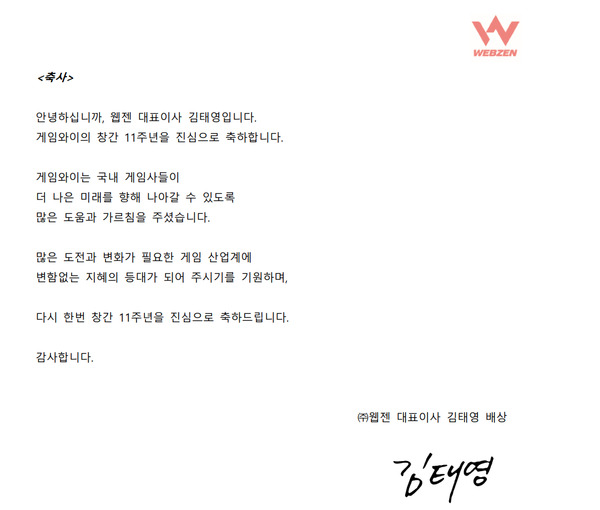 자사의 행보에 많은 응원 부탁드리며, 다시 한번 게임와이의 창간 11주년을 축하드립니다.