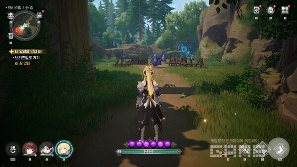 이번 테스트는 PC에서 플레이했는데 WASD로 캐릭터를 이동하고 마우스 좌 클릭으로 콤보 공격, 우 클릭으로 빠른 회피가 가능하다. 단 회피를 사용하면 게이지가 감소하여 무분별한 연속 회피를 막고 있다. 물론 게이지는 일정 시간이 지나면 다시 회복된다. 또한 타이밍이 맞춰 적의 공격을 회피했을 경우는 강력한 반격기도 구사할 수 있다. 이 게임은 3명의 캐릭터가 한 팀을 이루기 때문에 전투에서도 캐릭터를 교체하며 전투를 진행할 수 있다. 특히 캐릭터에 따른 공격 타입이나 속성 등이 다르기 때문에 게임을 진행하다 보면 이를 잘 활용할 필요가 있다.