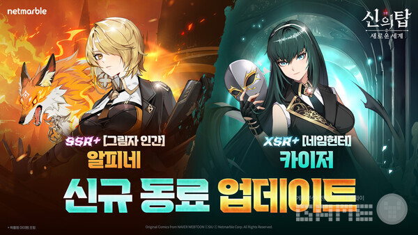 수집형 애니메이션 RPG ‘신의 탑: 새로운 세계’에서는 신규 SSR+ 동료 ‘[그림자 인간] 알피네’와 XSR+ 동료 ‘[네임헌터] 카이저’가 추가됐다. ‘알피네’는 그림자 여우를 다루는 만능 서포터로 설계됐으며, 원작 캐릭터 설정을 바탕으로 독특한 소환 스킬 연출이 구현됐다. ‘카이저’는 원작 스토리의 과거 시점을 기반으로 제작된 캐릭터로, 던전형 콘텐츠 ‘데이터 타워’에서 획득 가능하다.