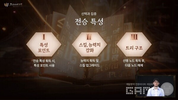 가장 먼저 소개한 콘텐츠는 전승 시스템이다. 전승 시스템은 모든 클래스를 대상으로 추가되는 신규 성장 시스템으로 60레벨 이상의 캐릭터로 전승 에피소드를 완료하면 해금할 수 있다. 전승 시 각 클래스는 전용 외형과 함께 기본 스킬과 시즌별로 변화하는 시즌 스킬을 얻을 수 있다. 특히 전승 특성 시스템을 통해 원하는 전투 스타일에 맞춰 능력치를 강화할 수 있다. 또한 무기 외형 역시 전승의 위엄에 어울리도록 화려한 디자인으로 변경할 수 있다. 단 무기 외형만 변경될 뿐 능력치에 대한 변화는 없다.