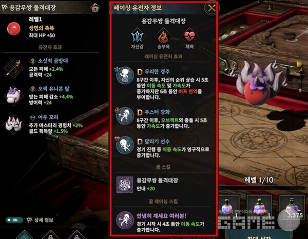 이와 함께 마스코트 캐릭터 '호문'을 활용한 신규 콘텐츠 ‘호문 레이싱’이 추가됐다. 해당 콘텐츠는 유저 조작 없이 자동 진행되는 시뮬레이션 형식의 레이스로, 각 호문의 성장 수치와 속성에 따라 결과가 달라진다. 이용자는 육성과 예측, 관전의 재미를 동시에 느낄 수 있다.