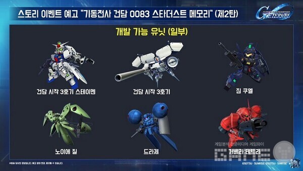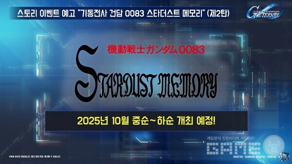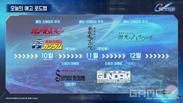 또한 10월에는 ‘기동전사 건담 0084 스타더스트 메모리’ 2탄 스토리 이벤트와 ‘기동전사 건담 철혈의 오펀스’ 후반부 메인 스토리가 완결된다.
