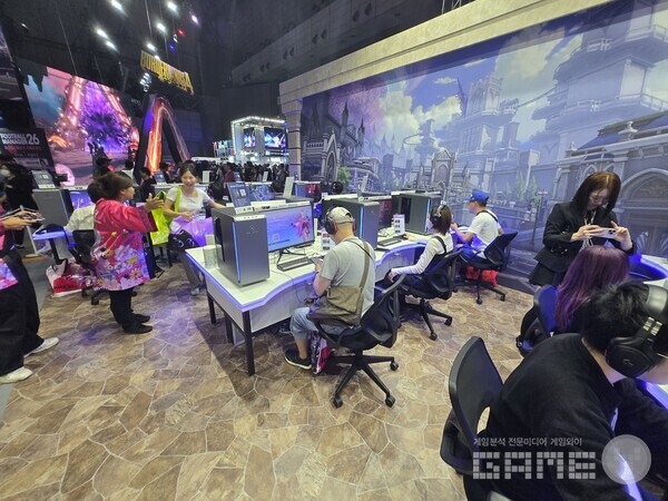 스마일게이트는 이번 전시에서 게임 속 세계를 직접 체험하는 듯한 공간을 구현하는 데 집중했다. 카제나 존은 덱빌딩 로그라이크 전투 체험과 함께, 혼돈의 영역 전송기를 실물 크기로 재현한 전시물이 설치돼 몰입도를 높였다. 반원형 LED 스크린에서는 혼돈에 잠식된 세계관 이미지가 재현돼 관람객이 게임 속에 들어온 듯한 체감을 선사했다.