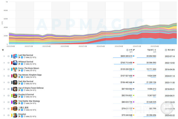 상위 타이틀들은 방대한 콘텐츠, 체계적인 라이브옵스, 세심하게 설계된 수익화를 통해 높은 기준을 세우고 입지를 지켜 왔다. 이러한 전략은 효과를 발휘해 시장의 리더 대부분이 수년간 자리를 유지하고 있다.