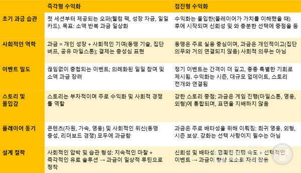 수익화 전략은 여러 면에서 다르지만, 두 가지 접근 방식 모두 배울 점이 많다. 이번 리서치에서는 일반적인 게임플레이에서는 드물지만 게임 수익화에 큰 영향을 미치는 요소들을 강조하고자 한다.