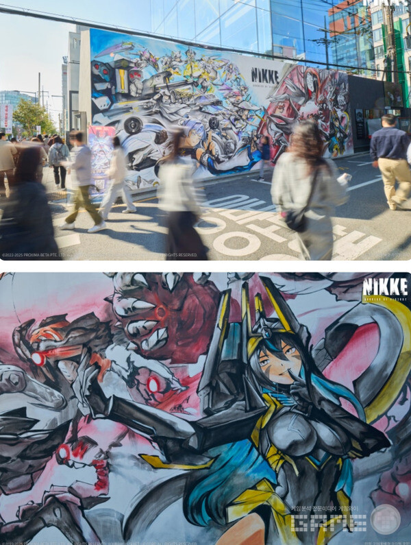 한편 승리의 여신: 니케 X 신영훈 작가 ‘최후’의 전장, 3주년 기념 수묵화 옥외 전시도 진행 중이다. 나유타의 부름에 응답해 한자리에 모인 니케들, 그리고 퀸과 맞서는 운명의 대전. 치열한 생사의 순간들을 신영훈 작가의 붓끝으로 담아낸 3주년 기념 수묵화가 무신사 엠프티 성수에서 벽화로 공개된다. 번지는 먹선 속 빛과 어둠, 그 안에서 역동적으로 펼쳐지는 희생과 구원의 서사를 직접 만나볼 수 있다.