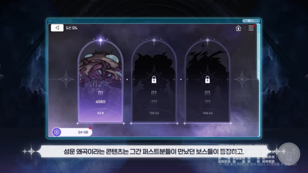 이와 함께 새로운 보스전 콘텐츠 ‘성운 왜곡’과 ‘대균열’도 순차적으로 추가된다. 성운 왜곡은 기존 보스를 강화한 변이 형태의 전투 콘텐츠로, 왜곡 중첩 단계를 높일수록 난이도와 보상이 상승한다. 시즌 초반에는 ‘켄트리스’가, 이후 2주 간격으로 ‘가주’, ‘단꿈’이 순차 등장한다. 대균열은 두 개의 파티를 편성해 제한된 턴 내에서 점수를 경쟁하는 콘텐츠로, 특정 조건을 충족하면 추가 효과를 얻을 수 있다. 누적 점수에 따라 보상과 스티커 등 장식 아이템이 주어진다.