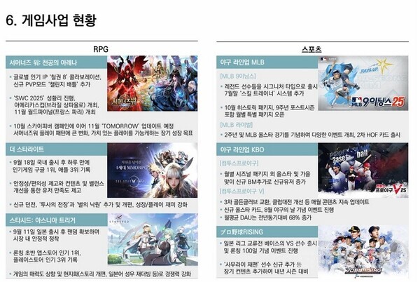 A ‘더 스타라이트’는 초반에 서비스 불안 요소가 있었다. 게임 플레이가 원활하지 않은 현상이 발생하면서 이러한 불안정 요소로 인해 목표로 했던 초기 성과를 달성하지 못했다. 이에 현재 개선 작업이 진행 중이며, 안정성, 편의성, 신규 콘텐츠와 밸런스 등의 개선 작업을 진행 중이다. 이를 통해 유저 만족도를 높일 수 있도록 노력 중이다. 경제 및 성장 클래스 등 게임의 전반적인 부분을 조정 중이며 11월, 12월에 반영될 것이고 이를 통해 플레이 재미가 강화될 것으로 기대한다. 재무적으로 만족스럽지 못한 성과를 보여드려 죄송하지만, 올해의 경험을 바탕으로 성공할 수 있도록 기대한다.
