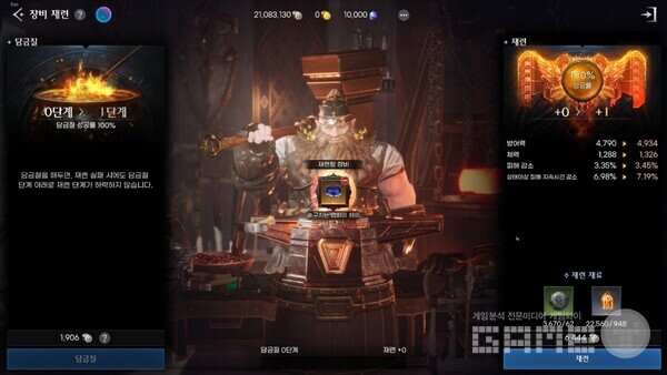 CBT에서도 핵심 성장 구조 일부가 적용돼 있다. 장비 성장에서는 원작의 ‘장기’ 시스템이 빠지고, 재련·담금질 구조를 혼합한 새로운 강화 방식이 적용됐다. 재련 실패 시 하락 패널티가 존재하는 대신, 일정 단계까지 담금질을 진행하면 하락을 방지할 수 있어 안정적인 성장을 원하는 이용자의 선택 폭이 넓어졌다.