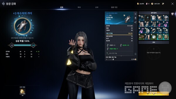 장비 강화는 강화석과 키나를 사용한다. 강화석은 장비 분해로 100% 환급되지만 소모된 키나는 회수되지 않는다. 1~4강 구간은 능력치 상승 대비 비용 효율이 높지만, 고강 단계에서는 필요 키나가 급증한다. 초반에는 방어구 3~4강, 무기 5~6강 정도로 골고루 분배하는 것이 합리적이다. 강화석은 고레벨 지역에서 수급 압박이 심해지므로, 초반 분해작을 통한 확보가 중요하다.